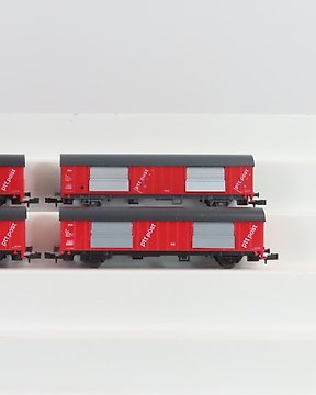 Roco N轨 - 24007/25092 - 模型火车货运车厢 (4) - 4x Postwagens Hbbkkss "PTT Post" - NS
