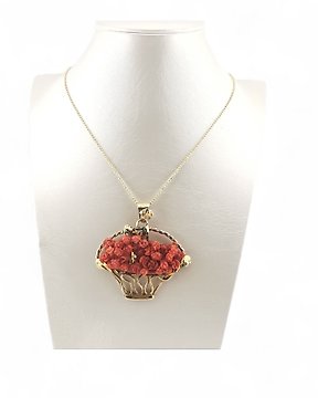 珊瑚 - 银 - 吊坠 - 手工雕刻