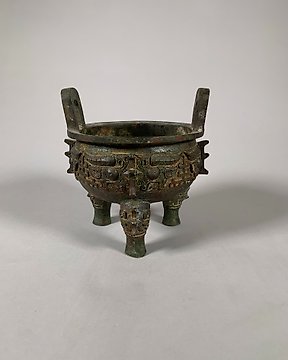 中国古代 黄铜色 战车车轴装饰,饰有饕餮面具图案,战国时期 - 青铜 - 中国 - 6.7 cm