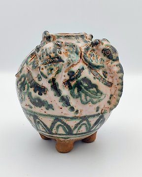 古老的兰纳王国 釉面陶瓷 大象头形状的药油瓶,配有花卉装饰 - 155 mm