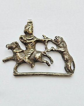 丝绸之路 - 中亚的 黄铜色 一对耳环,神祇骑象 - 55 mm (没有保留价)