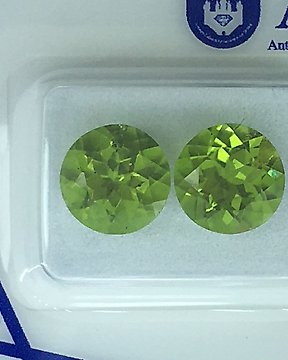 没有保留价 - 2 pcs 绿色 橄榄石 - 5.95 ct - 安特卫普宝石检测实验室(ALGT) - 8mm 圆形切割绿碧玺