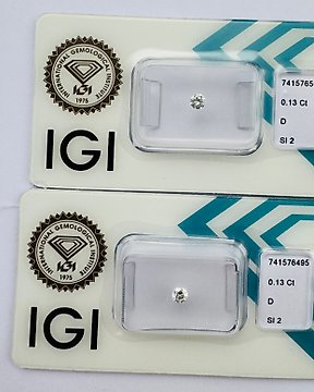 没有保留价 - 2 pcs 钻石 (天然) - 0.26 ct - 圆形 - D (无色) - SI2 微内含二级 - 国际宝石研究院(IGI) - 匹配的对