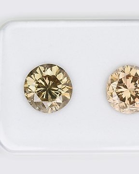 2 pcs 钻石 (天然色彩的) - 1.84 ct - 圆形 - Fancy 稍帶黄色的 棕色 - I2 内含二级, SI2 微内含二级 - 安特卫普宝石检测实验室(ALGT)