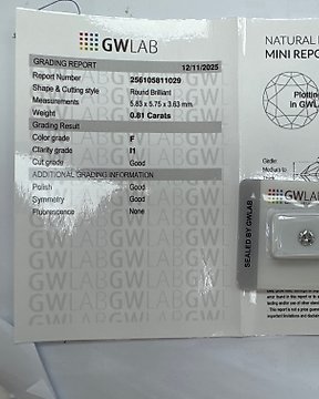 没有保留价 - 1 pcs 钻石 (天然) - 0.81 ct - 圆形 - F - I1 内含一级 - Gemewizard宝石实验室(GWLab)