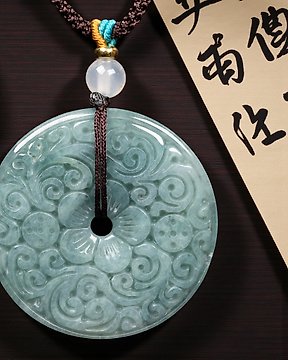 雕刻, Jade Pendant - 37 mm - 认证翡翠(A-玉)