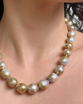 多彩巴洛克淡水珍珠项链,梯形镶嵌核心,环链设计。 镀金925‰银制扣环,直径10/13毫米,长度从45到47厘米。- 86 g - (1)