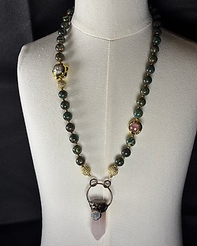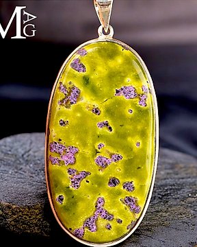银吊坠 亚特兰蒂斯石 多样化珠宝 澳大利亚亚特兰蒂斯石——蛇纹石中的圣捷石 - 高度: 74.5 mm - 宽度: 33 mm- 27 g