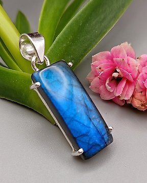 独一无二的925纯银珠宝,配以顶级蓝色拉布拉礦石 - 高度: 40 mm - 宽度: 10 mm- 7.4 g - (1)