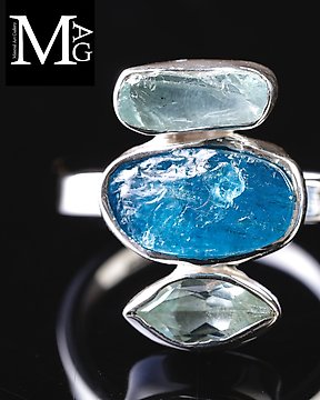 优雅的银戒指,配有磷灰石和海蓝宝石——意大利认证珠宝 - 高度: 20 mm - 宽度: 22 mm- 6 g
