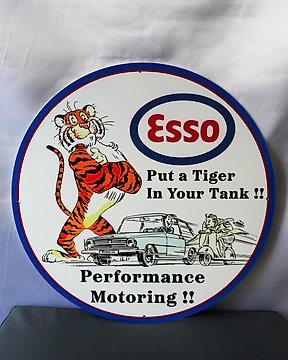 Sign - Esso - “Put a Tiger in Your Tank” – Tiger Mascot with Classic Car & Scooter – Performance Motoring