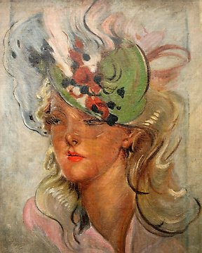 Jean-Gabriel Domerque (1889-1962) - Elegant woman with hat