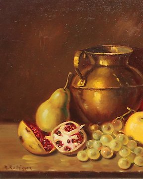 F. A. Hollands (XIX) - Natura morta con coppa di frutta