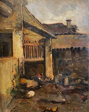 Lorenzo Delleani (1840-1908) - Cortile del casolare