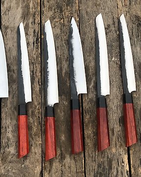 厨刀 - 手工收藏品厨师刀具套装(7件)日本特殊钢,天然红木手柄 - 北美 - Leather Saya (Dr12)