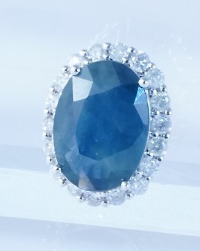 吊坠 白金 - 5.27ct. tw. 蓝宝石 - 钻石