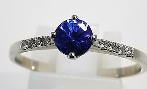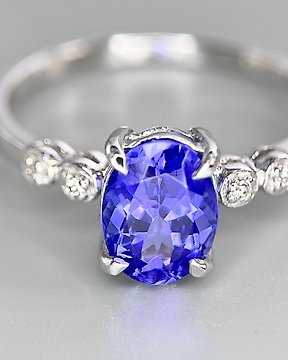 戒指 - 18K包金 白金 坦桑石 - 钻石