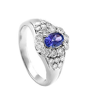 戒指 白金 - 1.93ct. tw. 坦桑石 - 钻石