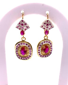 没有保留价 - 耳环 银, Gold-plated 红宝石 - 蓝宝石 - 11.80 克特 - 24 克拉黄金