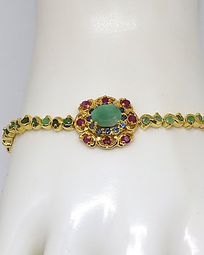 没有保留价 - 手镯 银 - 3.80ct. tw. 祖母绿 - 混合宝石 - 红宝石,蓝宝石,