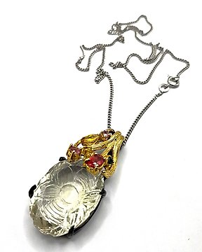 没有保留价 - 吊坠项链 银 - 51.50ct. tw. 石英 - 蓝宝石
