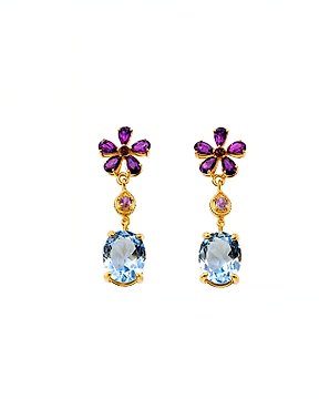 没有保留价 - 耳环 银, Gold-plated 紫水晶 - 黄宝石 - Blue Sky - 8,80 kt.