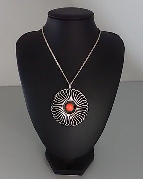 珊瑚 - 银 - 吊坠项链 - Gustave Hauber -Koraal