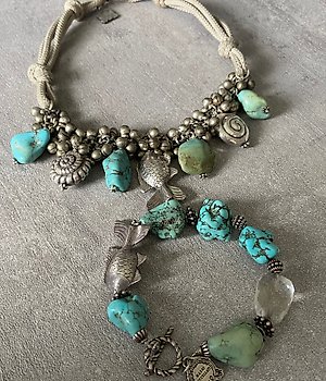 没有保留价 - 2件套珠宝 925纯银 绿松石 - 21 厘米
