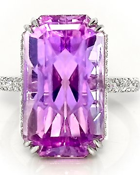 戒指 - 18K包金 白金 紫锂辉石 - 钻石