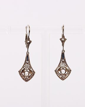耳环 - 18K包金 玫瑰金 - 0.13ct. tw. 钻石 (天然) - 蓝宝石 - 装饰艺术复兴