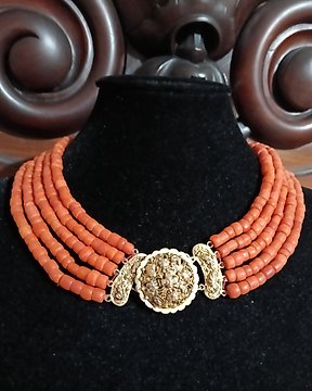 项链 - 18K包金 黄金 血珊瑚 - 血珊瑚 - 珍贵且稀有的项链