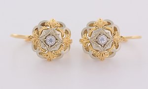 耳环 - 14K包金 黄金, 白金 钻石 (天然)