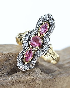 没有保留价 - 戒指 - 18K包金 黄金, 银 - 0.98ct. tw. 钻石 (天然) - 红宝石