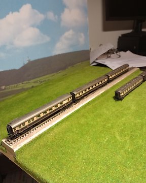 Minitrix, Trix N轨 - 13180;13181;13714 - 模型火车客运车厢套装 (4) - 套装由多个 Minitrix/Trix N-车厢组成,采用 CIWL 涂装。照片显示上下两面。 - Compagnie Internationale des Wagons-Lits, DB起拍价€1