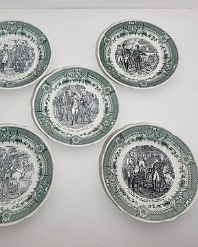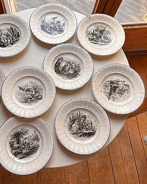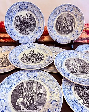 Sarreguemines - 甜点用具 (9) - Juego de platos de cerámica decorados con escenas históricas - 陶器, Terre de Fer - Exclusive Art de Table起拍价€1