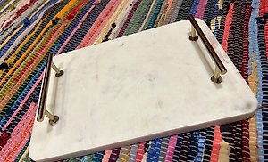 Handvervaardigd - 托盘 - 非常漂亮的大型桃花心木木制托盘,花卉镶嵌设计。 - 木 - Serveerblad