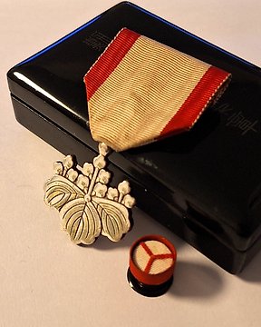 日本 - 陆军/步兵 - 奖章 - Silver Japanese Order of the Rising Sun 8th class with ribbon, badgepin and lacuered box