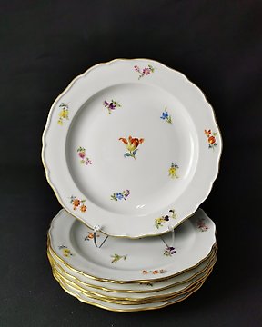 Meissen - 盘子 - Prunkschale/Prunkteller Ø 29,0cm Floral-/Rocaillenrelief Mattgold, Glanzgold, Blumenmalerei - 瓷当前出价€120