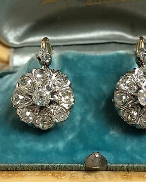 没有保留价 - 耳环 - 18K包金 黄金, 白金 - 1.94ct. tw. 钻石 (天然) - 钻石 - Poinçon cheval (1900)