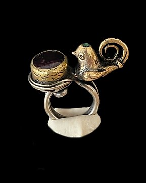红宝石 壮丽的天然红宝石和翡翠鸟戒指。一等品质。手工制作。无底价。 - 高度: 30 mm - 宽度: 34 mm- 17.8 g