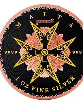 马耳他. 5 Euro 2024 1 oz Malta Maltese Cross Rose Gold Black Platinum 24k Gold Gilded Colorized Silver Coin (没有保留价)当前出价€79