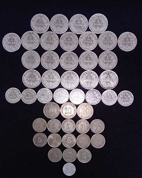意大利, 西班牙, 奥地利, 德国, 英国. Lot de 8 anciennes pièces de monnaie en argent 1873/1967 1873/1964 (没有保留价)当前出价€120