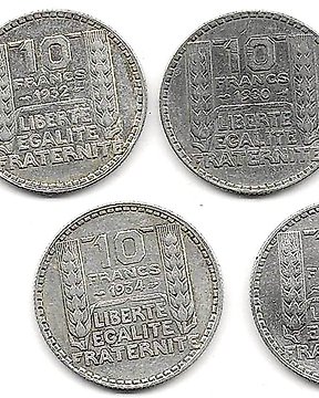 法国. 10 Francs 1929/1938 Turin (lot de 7 monnaies en argent) (没有保留价)