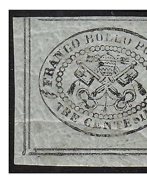 意大利古城邦-教皇国 1852 - 教皇徽章,3baj bruno grigiastro 垂直分割,比例为1/3(1baj)以上。 - Sassone n.4Ab
