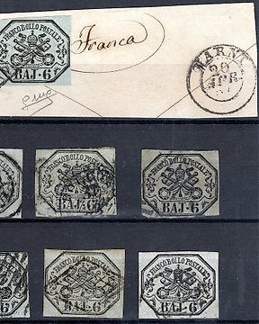 意大利古城邦-教皇国 1852 - 14个6 Bajocchi价值的整体,全部以良好的利润使用,甚至在碎片上也是如此。 - Sassone n. 6+6A