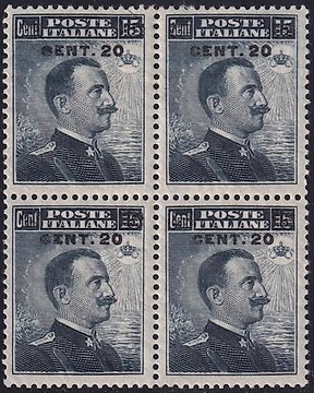 意大利王国 1916 - Michetti 20 c. 和 15 c. 灰黑色 Quartina Sass 106,位置良好,完整,MNH**,奢华
