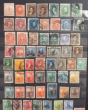 南美 1860/1962 - 南美洲 1860-1962,MH,使用过的,作废邮票收藏,多种发行,智利 - 太平洋战争 - Catalog codes: Michel AR 1a, Stamp Number AR 1, Yvert et Tellier AR 1, Stanley Gibbons AR 1, Gz当前出价€3