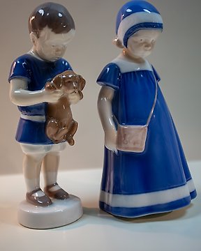 Bing & Grondahl - 雕像 - Servizio di figure in porcellana danese (bambino con cucciolo e bambina con borsetta) (2) - 瓷起拍价€1