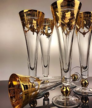 |-❥ (7+1) x *Exklusives Theresienthal Glashütte (Germany)* - 香槟杯 (8) - 香槟杯+水瓶套装,稀有且未使用,复古水晶玻璃杯,香槟杯,气泡酒 - 24% 白水晶, 水晶 - 收藏品起拍价€1