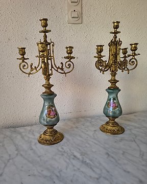 枝状大烛台 (2) - 黄铜色, 瓷 - 一对烛台